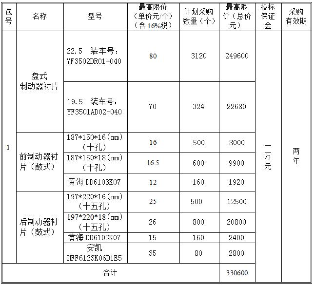 競爭性談判公告 鞍山市交通運輸集團(tuán)有限公司對“制動器襯片項目”(招標(biāo)編號:AJY2019WZ002)進(jìn)行國內(nèi)公開采購,預(yù)計年采購額33萬元左右,采購方式為競爭性談判,歡迎國內(nèi)合格的供應(yīng)商參加本次公開采購活動。 一、采購內(nèi)容及項目要求 1.采購內(nèi)容