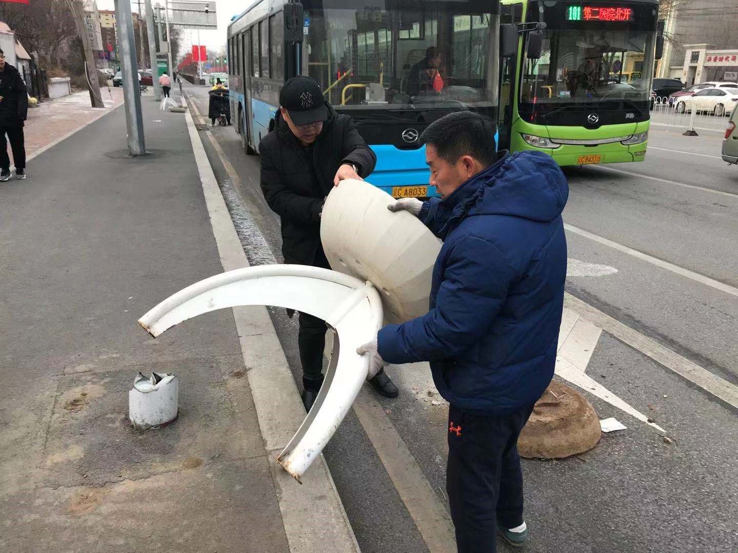 121日,鞍山交運(yùn)集團(tuán)第二汽車分公司客運(yùn)六隊(duì)接到駕駛員反映,興盛路上有十余個(gè)立式花壇翻倒在路上嚴(yán)重影響交通,部分花壇還倒在了公交站亭附近,對(duì)公交車進(jìn)站也形成障礙。接到消息后,客運(yùn)六隊(duì)領(lǐng)導(dǎo)立即組織人員上線排查,在興盛路和民生路交界處,由南向北方向發(fā)現(xiàn)了翻倒的花壇,平均20米左右一個(gè),共10余個(gè),長(zhǎng)度大約300米,有的還在快車道上,造成車輛通行困難,存在極大安全隱患。六隊(duì)領(lǐng)導(dǎo)馬上帶領(lǐng)大家一邊疏導(dǎo)車輛安全通行,一邊動(dòng)手搬除障礙物,經(jīng)過半個(gè)小時(shí)的努力,將花壇全部歸位,排除了道路交通安全隱患,確保該路段車輛正常的通行秩序。此舉得到了路過車輛司機(jī)揮手致意,及圍觀市民的點(diǎn)頭稱贊,他們的做法無形中也在寒冷的冬季給人們帶來一份溫暖和感動(dòng),更提升了交運(yùn)集團(tuán)服務(wù)于民的正能量形象,為他們點(diǎn)贊!